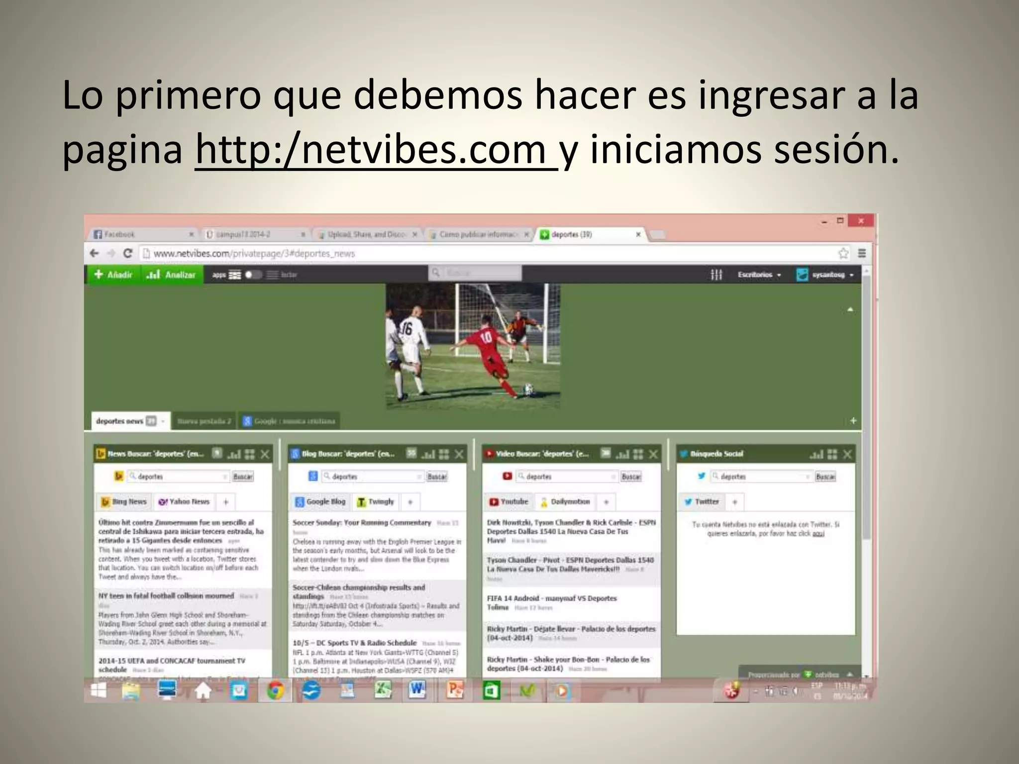 Para publicar información de Netvibes en redes sociales, primero debes iniciar sesión en Netvibes.com e ingresar términos de búsqueda. Luego selecciona la noticia más relevante y elige la red social, como Facebook, en la que compartirás el enlace. Finalmente, comparte la noticia seleccionada en un clic.