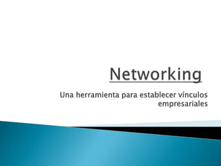 El documento describe la importancia del networking para las empresas y los empleados. El networking permite establecer conexiones que generan nuevos clientes, proveedores y oportunidades laborales. Sin embargo, muchos no lo usan porque lo ven como deshonesto o una pérdida de tiempo. El documento explica que el networking es esencial para el éxito empresarial y profesional.