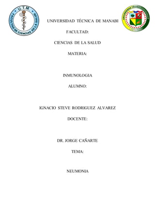 La neumonía es una infección pulmonar que causa inflamación e incapacidad para respirar con normalidad. Los síntomas comunes incluyen tos, fiebre y dificultad para respirar. La neumonía puede tratarse con antibióticos y prevenirse a través de vacunas e higiene.