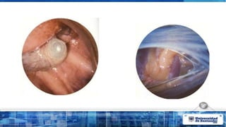 El documento describe el neumotórax, que es la presencia de aire en la cavidad pleural causando el colapso pulmonar. Discute la incidencia, síntomas, diagnóstico, clasificación y tratamiento del neumotórax primario y secundario. La historia del conocimiento del neumotórax se remonta a Hipócrates, y en la actualidad el tratamiento incluye observación, drenaje por aguja, toracoscopia y pleurodesis.