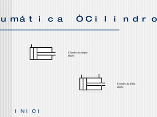 Este documento presenta los conceptos básicos de la simbología neumática, incluyendo cilindros, válvulas, trayectorias de flujo de válvulas, válvulas antirretorno, instrumentos de medida y accionamiento de válvulas. Explica los diferentes tipos de cada uno de estos elementos neumáticos de manera concisa.