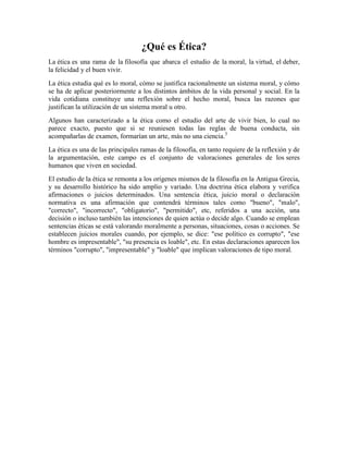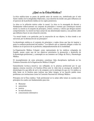 La ética es una rama de la filosofía que estudia la moral, la virtud y el deber. Estudia qué es lo moral y cómo justificar sistemas morales. La ética médica se basa en principios como el bienestar del paciente y la no maleficencia, guiando la conducta de los médicos. La ingeniería genética pretende mejorar la calidad humana a través de la eugenesia, pero la eugenesia positiva plantea problemas éticos al interferir con la autonomía.