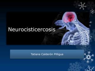 La neurocisticercosis es una infección del sistema nervioso central causada por la larva de la tenia Taenia solium. Es la causa más común de epilepsia adquirida en el mundo en desarrollo. Los síntomas incluyen epilepsia, hipertensión intracraneal, encefalitis y meningitis. El diagnóstico se basa en hallazgos de imagen, pruebas serológicas y criterios epidemiológicos. El tratamiento depende de si el parásito está vivo o muerto y puede incluir medicamentos antiparasitarios