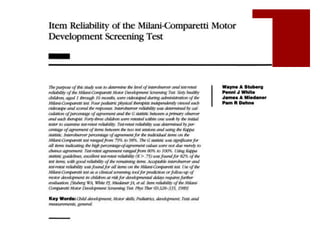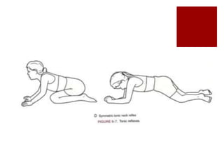 Este documento describe el desarrollo neuromotor y las deficiencias en el desarrollo neuromotor en los niños. Explica que el desarrollo es un proceso multidimensional que incluye lo físico, cognitivo, emocional y social. También describe varios hitos del desarrollo motor grueso y fino desde el nacimiento hasta los 3 meses de edad, así como varios reflejos del desarrollo y sus posibles efectos si persisten. Finalmente, presenta un caso clínico de un niño de 14 meses con posible retraso