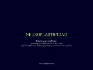 El documento describe la neuroplasticidad y cómo la actividad mental continua puede moldear el cerebro a lo largo de la vida. Explica que estudios han encontrado que áreas cerebrales como el hipocampo de taxistas y la corteza auditiva de músicos están más desarrolladas debido al uso frecuente. También señala que mantener un estilo de vida cognitivamente activo puede ayudar a prevenir el deterioro cerebral y la demencia en la vejez.