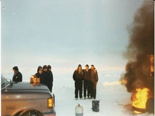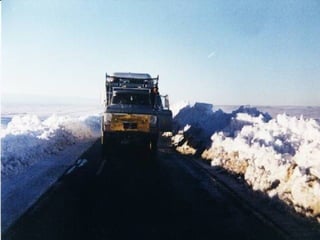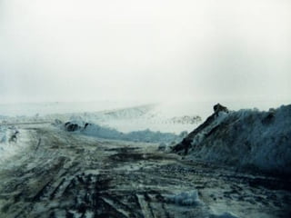 La ruta nacional 3 entre Piedra Buena y Lemarchand en Nevada, Argentina se considera una zona crítica en invierno 1995. El documento presenta fotos y textos sobre un chofer Antonio Villarreal y su caravana que viajaba por la ruta nacional 3 hacia Cmte. Luis Piedra Buena durante ese invierno.