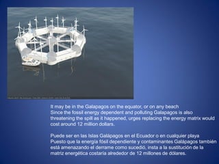 Este documento describe un diseño flotante para generar energía eólica y servir como hotel ecológico cerca de la costa. El diseño consiste en una estructura en forma de flor de varios pétalos que pueden abrirse y cerrarse para aprovechar la luz y las vistas. Cada pétalo tendría un propósito diferente como investigación, energía o alojamiento. El costo estimado para reemplazar la matriz energética de las Islas Galápagos con este diseño sería de alrededor de 12 millones de
