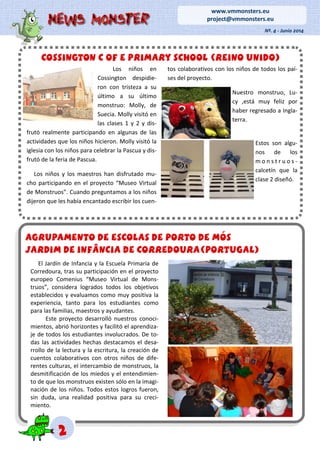 El documento presenta los resultados de la evaluación del proyecto "Museo Virtual de Monstruos", un proyecto educativo europeo que involucró a 6 escuelas de Suecia, Reino Unido, Portugal, Italia, República Checa y España durante dos años. La evaluación, realizada en la última reunión de coordinación en Asturias, España, mostró resultados positivos en áreas como el desarrollo de la lectura, la escritura y las habilidades lingüísticas entre los estudiantes, así como una mejor comprensión de otras culturas. Tanto