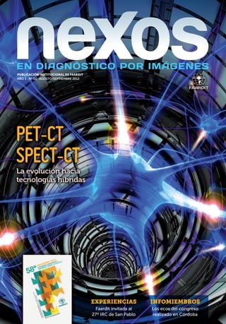 El documento resume el XIV Congreso Internacional de Diagnóstico por Imágenes realizado en Córdoba, Argentina en mayo de 2012. El congreso contó con 1210 participantes de Argentina y el extranjero y 22 expositores. Los presidentes de SORDIC y FAARDIT destacaron la calidez humana y el entusiasmo de los asistentes, así como la importancia del Encuentro Nacional de Residentes para la formación de nuevos radiólogos.