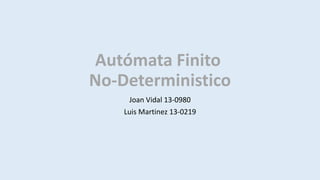 1) Los automatas finitos no deterministas generalizan a los deterministas al permitir más de una computación alternativa en la misma cadena de entrada. 2) Se diferencian de los deterministas en que permiten más de un estado sucesor y transiciones sin consumir símbolos. 3) El lenguaje aceptado por un AFND incluye todas las cadenas que puedan llevar al automata a un estado final.