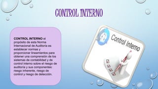 Este documento presenta información sobre control interno, riesgo inherente, riesgo de control, riesgo de detección y auditoría en ambientes de sistemas de información computarizada. También cubre consideraciones de auditoría relacionadas con entidades que utilizan organizaciones de servicios, evidencia de auditoría, trabajos iniciales, procedimientos analíticos, muestreo y partidas específicas como inventario, litigio, inversiones y segmentos. El documento proporciona lineamientos y procedimientos para la auditoría de estas áreas.