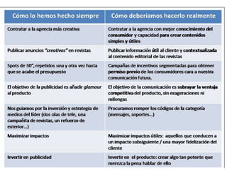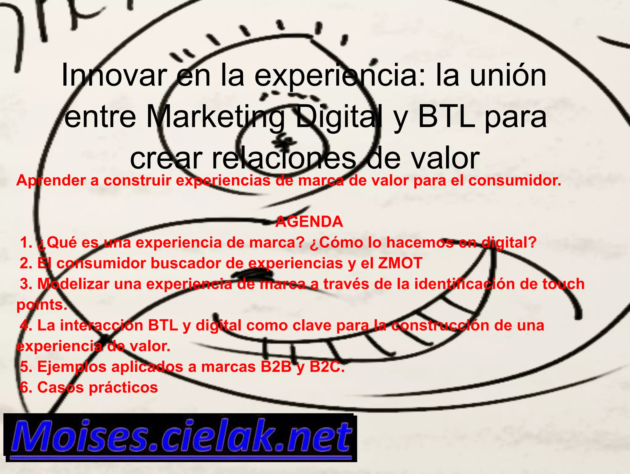 Este documento presenta una agenda para una conferencia sobre cómo las marcas pueden crear experiencias de valor para los consumidores a través de la unión entre marketing digital y actividades fuera de línea. La agenda incluye discusiones sobre qué es una experiencia de marca, el consumidor buscador de experiencias, modelizar experiencias a través de puntos de contacto, y el uso de la interacción digital y fuera de línea para construir experiencias valiosas. También incluirá ejemplos aplicados y casos prácticos.