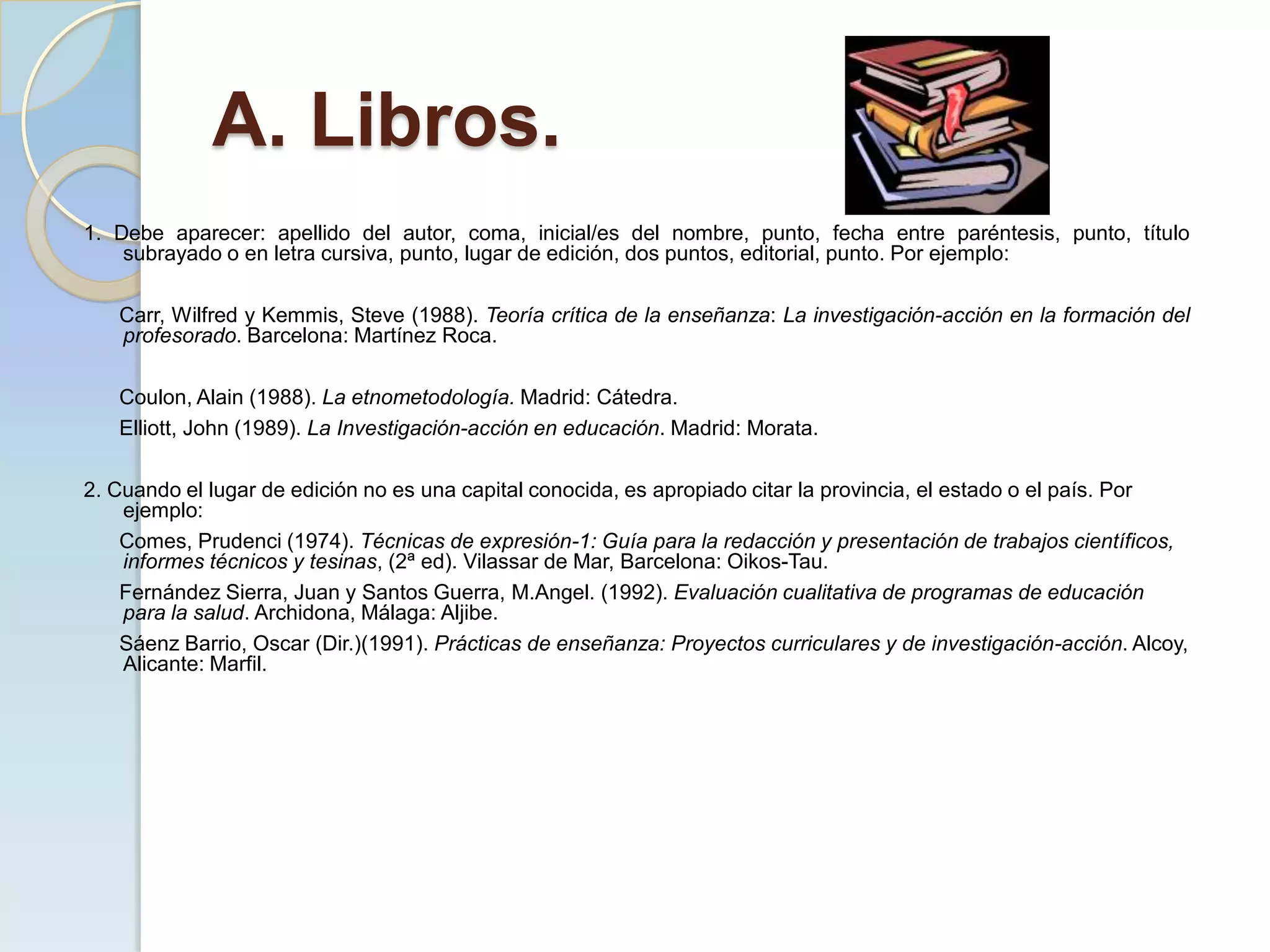 Este documento presenta las normas APA para citar información bibliográfica en 3 oraciones: 1) Detalla las normas para citar libros, artículos de revistas, documentos no publicados y otros tipos de documentos; 2) Explica que las referencias bibliográficas deben presentarse ordenadas alfabéticamente por autor o primer autor; 3) Indica que si hay varias obras de un mismo autor deben ordenarse por año de publicación.