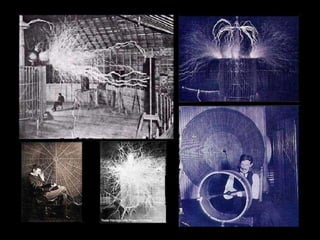 Este documento resume la vida y logros del inventor Nikola Tesla. Tesla inventó la transmisión inalámbrica de energía eléctrica y creía que la energía debería ser libre y accesible para todos. Sin embargo, sus inventos fueron olvidados deliberadamente por los magnates de la energía que controlaban la industria. A pesar de sus numerosas invenciones revolucionarias, Tesla murió en la pobreza mientras sus archivos eran confiscados por el FBI.