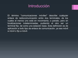 Las comunicaciones móviles permiten la comunicación entre terminales, uno de los cuales debe estar en movimiento, y se clasifican en sistemas como PMR, trunking y GSM, cada uno con características específicas de optimización y acceso a frecuencias. La evolución hacia estándares digitales como GPRS y UMTS ha transformado la comunicación inalámbrica, permitiendo un uso masivo y diversificado a nivel global. Este cambio ha convertido a los dispositivos móviles de herramientas profesionales a elementos fundamentales en la vida cotidiana de millones de personas.