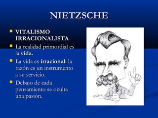 Nietzsche critica la filosofía tradicional occidental por negar la vida y sus valores dinámicos a través de tres errores fundamentales: 1) la escisión entre un mundo verdadero inmutable y otro aparente cambiante, 2) los presupuestos metafísicos del lenguaje que perpetúan esta escisión, y 3) la moral y la ciencia moderna que se basan en ella. Nietzsche propone una filosofía del sí que afirme la vida a través de nuevos valores como la voluntad de poder y el eterno retorno.