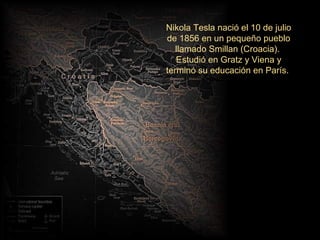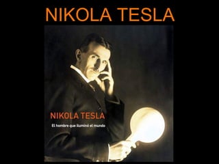 Nikola Tesla nació en 1856 en Croacia y se convirtió en un inventor pionero en el campo de la electricidad. Trabajó como asistente de Thomas Edison y construyó un laboratorio en Colorado donde desarrolló la transmisión inalámbrica de energía eléctrica. Inventó la bobina de Tesla en 1891 que sirvió de base para la transmisión inalámbrica de corriente. Aunque concibió sus inventos para beneficiar a la humanidad, los industriales se opusieron porque amenazaban sus fuentes de ingreso,