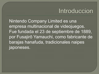 Nintendo comenzó como una pequeña empresa fundada en 1889 en Kioto, Japón, que producía barajas de cartas tradicionales japonesas llamadas hanafuda. A lo largo de los años, Nintendo se expandió al mercado de los videojuegos, lanzando varias consolas exitosas como la Nintendo Entertainment System, Nintendo 64, y Nintendo GameCube. Nintendo también tuvo mucho éxito con sus consolas portátiles, incluyendo la Game Boy y la familia de consolas Nintendo DS.