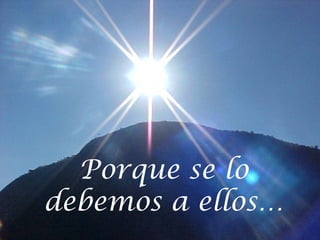 El documento hace un llamado a unirse para construir un mundo mejor en honor a aquellos a quienes les debemos mucho. Insta a unir nuestras manos para trabajar juntos por un objetivo común.