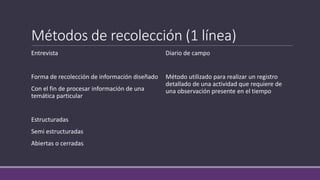 Este documento describe diferentes herramientas para recolectar información para un proyecto de aula con TIC, incluyendo entrevistas, diarios de campo, bases de datos especializadas y revisión de literatura. También incluye enlaces a videos de YouTube sobre el uso de dispositivos móviles y tabletas en educación y la importancia de las TIC en la enseñanza.