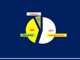 Este documento describe los diferentes niveles de impacto que se deben considerar para lograr una presentación efectiva. En primer lugar, se debe trabajar en mejorar la presentación interna mediante el uso de un lenguaje positivo. En segundo lugar, es importante causar una buena primera impresión en los receptores a través de la apariencia y la forma en que se describe lo que se hace. Finalmente, se requiere dominar la mente para aprovechar las fortalezas y superar las debilidades a fin de realizar una presentación externa de calidad.