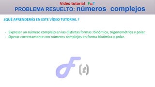 El documento presenta el cálculo de varias operaciones con números complejos expresados en forma polar y binómica. Se explican los pasos para sumar, restar y multiplicar números complejos, expresando el resultado final en forma polar.