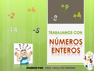 Este documento introduce los números enteros, incluyendo sus propiedades, la recta numérica y operaciones básicas. Explica que los números enteros incluyen los positivos, negativos y cero. Describe cómo comparar y sumar números enteros dependiendo de si sus signos son iguales o diferentes, así como las reglas de la multiplicación y división según la ley de los signos. Finalmente, muestra ejemplos de cómo resolver operaciones combinadas siguiendo el orden correcto.
