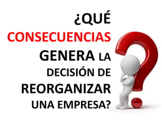 Este documento analiza las implicancias de la reorganización de una empresa constructora en Salta llamada López y Valdez S.H. Presenta la estructura actual de la empresa, problemas detectados y un organigrama propuesto. Incluye análisis FODA, EFI, EFE y matrices para desarrollar una estrategia. Finalmente, explica las implicancias de regularizar la sociedad de hecho como una Sociedad de Responsabilidad Limitada.