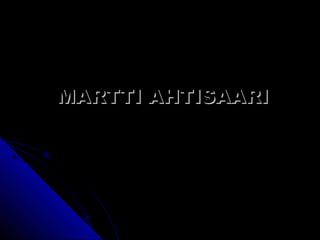 Martti Ahtisaari nació en Argentina en 1893 y recibió el Premio Nobel de la Paz por su trabajo diplomático a nivel mundial y sus esfuerzos durante tres décadas para resolver conflictos. Este documento sobre Ahtisaari fue creado por los estudiantes Marcial Fervenza Martínez y Javier Alejandro Rivero Fernández del CEIP Quintela-Moaña durante el curso 2012-2013.
