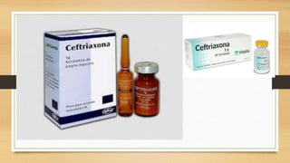 El documento proporciona una guía detallada sobre el uso y mecanismos de acción de varios antibióticos, incluyendo penicilinas, cefalosporinas y aminoglucósidos, así como sus indicaciones terapéuticas, contraindicaciones y efectos secundarios. Se describen las características de medicamentos específicos como la amikacina y la vancomicina, destacando la importancia de la administración adecuada y el monitoreo de reacciones adversas. Además, se menciona la clasificación de antibióticos según su estructura química y mecanismo de acción, y se enfatiza la necesidad de ajustar dosis según la gravedad de las infecciones y la función renal del paciente.