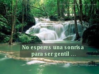 Este documento enfatiza la importancia de vivir en el presente y no esperar para hacer las cosas que importan. Aconseja no esperar a ser amado para amar, no esperar estar solo para valorar la amistad, y no esperar tener dinero o la persona perfecta antes de ayudar a los demás o enamorarse. En general, insta al lector a no vivir esperando y en lugar de eso, a ser protagonista de su propia vida apreciando cada día y dando amor desinteresadamente.