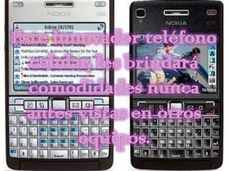 El documento describe el teléfono celular Nokia e71, destacando que brinda comodidades nunca antes vistas en otros equipos móviles y menciona sus partes y modelos disponibles.