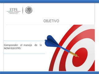 Este documento presenta información sobre la NOM 018-STPS-2015, el Sistema Armonizado para la Identificación y Comunicación de Peligros y Riesgos por Sustancias Químicas Peligrosas en los Centros de Trabajo. Explica que la norma establece criterios armonizados para clasificar sustancias y mezclas de acuerdo a sus peligros, y elementos armonizados para comunicar dichos peligros a través de etiquetas y hojas de datos de seguridad. También describe los requisitos para la clasific