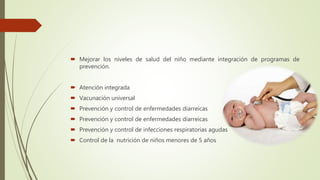 El documento NOM-031-SSA2-1999 establece pautas para la atención integrada de la salud infantil en México, destacando la importancia de la vacunación universal y la prevención de enfermedades diarreicas y respiratorias. Se enfoca en la capacitación de madres y el control nutricional de niños menores de 5 años, así como en medidas específicas para asegurar la salud y el bienestar infantil. Se requiere un esquema básico de vacunación y un control regular del crecimiento y desarrollo a través de la cartilla nacional de vacunación.