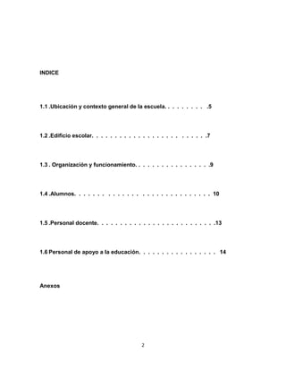 El documento describe la Escuela Secundaria Diurna No. 314 "Blas Galindo" en la Ciudad de México. Detalla la ubicación, edificios, organización, personal, y alumnos de la escuela. Fue construida en 1910 y atiende a estudiantes de nivel socioeconómico medio. Cuenta con tres edificios, 15 salones de clase, laboratorios, talleres y canchas de deportes. La escuela es dirigida por un director, subdirector y maestros. Tiene alrededor de 600 alumnos distribuidos en grad