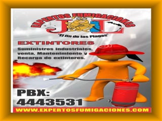 Expertos Fumigaciones es una compañía de control de plagas fundada en 2009 en Rionegro, Antioquia. Ofrece una variedad de servicios como desratización, control de insectos y mantenimiento de zonas verdes. La compañía cumple con todos los requisitos legales y tiene como misión ofrecer soluciones de control de plagas de manera responsable con la salud y el medio ambiente.