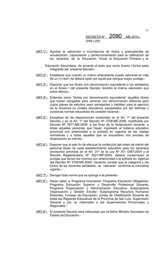Este decreto establece una nueva valoración e incumbencia de títulos y antecedentes de actualización, capacitación y perfeccionamiento para la calificación de docentes. Se aprueba el Anexo I que detalla la puntuación asignada a diferentes tipos de títulos y antecedentes. Además, se derogan normas contrarias y se disponen directivas para la aplicación de esta nueva metodología de calificación docente.