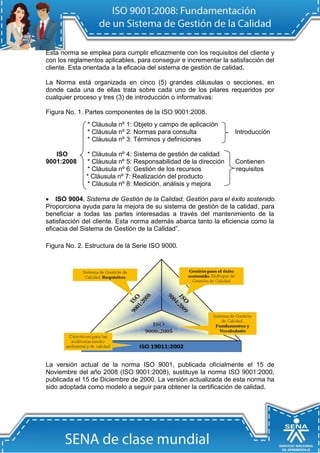 2) La ISO 9001 especifica los requisitos de un sistema de gestión de la calidad para que una organización cumpla con los requisitos del cliente y los reglamentos aplicables.