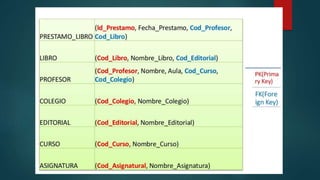 Dada lasiguiente relación PRESTAMO_LIBROS (Colegio, profesor, asignatura/
