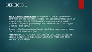 información disponible y aplique el proceso de normalización, hasta llegar a