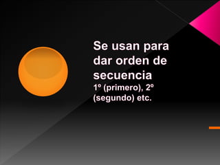Este documento proporciona información sobre los números cardinales y ordinales, incluyendo su uso para contar cosas, decir edades, fechas y más. También explica las reglas de concordancia entre sustantivos y adjetivos en términos de género, número y caso.