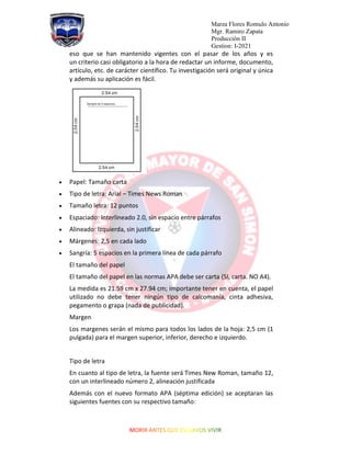 El documento presenta una explicación detallada de las normas APA para la presentación de trabajos académicos. Explica que las normas APA establecen parámetros uniformes para la citación de fuentes y la presentación de textos. Luego, describe los aspectos formales que deben seguirse como el tamaño y tipo de papel, margenes, tipo y tamaño de letra, numeración de páginas, entre otros. Finalmente, brinda ejemplos sobre cómo realizar citas textuales y referencias bibliográáficas siguiendo el formato APA.