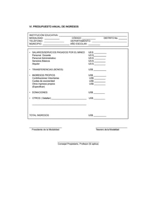 El documento presenta los procedimientos para la integración, legalización y funcionamiento del Consejo Directivo Escolar (CDE) en los centros educativos oficiales. Describe que el CDE es un organismo colegiado integrado por el director, representantes de educadores, padres de familia y alumnos. Explica también los requisitos para ser miembro del CDE, sus funciones y atribuciones, y las normas que debe seguir como la toma de decisiones y registro de actas.