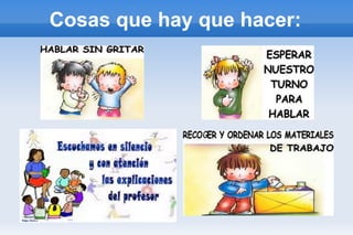 Este documento presenta las normas de convivencia para el primer curso C. Establece que los estudiantes deben levantar la mano para hablar, hablar con respeto a los profesores, permanecer sentados y en silencio durante los cambios de clase, y respetar a los compañeros y el material escolar. Además, prohíbe acosar a los compañeros, mascar chicle, utilizar los ordenadores sin permiso de un profesor, tirar desperdicios al suelo, y hablar con malos modos.