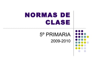 Las normas de clase para los estudiantes de 5o primaria enfatizan la puntualidad, el respeto mutuo, la concentración en clase, la limpieza del aula y la escuela, el orden y cuidado del material, pedir ayuda a los maestros cuando sea necesario, y resolver los problemas a través del diálogo.