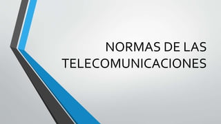 Este documento describe varias organizaciones normativas para comunicaciones de datos. Menciona que durante la última década la industria de comunicaciones de datos creció rápidamente, creando la necesidad de estandarizar la comunicación entre sistemas. Luego enumera varias organizaciones como ISO, CCITT, ANSI e IEEE que establecen lineamientos y normas para asegurar la transferencia ordenada de comunicaciones entre sistemas que usan equipos diferentes. También menciona algunas normas específicas como ISO 27001 sobre seguridad de la información y CCITT V.33