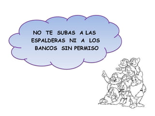 El documento presenta una lista de 10 reglas de conducta para los estudiantes durante la clase, incluyendo escuchar a los demás, respetar el turno de palabra, ayudar a los compañeros cuando lo necesiten, compartir y cuidar el material, no comer chicle en clase, hacer caso a la maestra, no empujar ni pegar a los compañeros, y llegar y marcharse de clase en fila y en silencio.