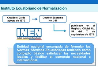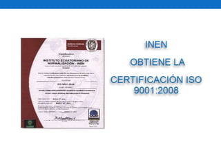Este documento presenta un resumen de las 5 personas que realizaron una auditoría ambiental en mayo de 2014 para el Instituto Ecuatoriano de Normalización. Además, proporciona información sobre el INEN, incluida su misión, objetivos, procesos de certificación y normas técnicas relacionadas con la gestión ambiental.