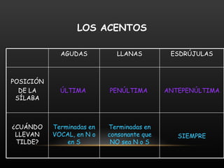 Este documento resume las reglas ortográficas básicas sobre el uso de acentos y mayúsculas en español, así como las reglas para la escritura de las letras b, c, d, g, h, j, ll, m, r, rr, v, x, y y z. Explica cuándo se usan tildes, mayúsculas y cada una de estas letras, proporcionando ejemplos para ilustrar cada regla.