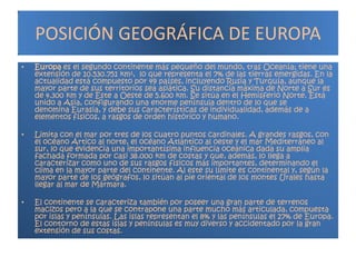 El documento proporciona información sobre Europa y Noruega. Brevemente, describe que Noruega se encuentra en la península escandinava en el norte de Europa, limitando con el océano Ártico, Atlántico y mar del Norte. Tiene un clima frío influenciado por la corriente del Golfo y su economía se basa en los recursos naturales como el petróleo y la pesca. La religión predominante es la Iglesia evangélica luterana aunque existe libertad religiosa.